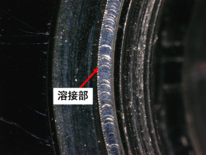 支給いただいた部品も高精度で製作されていましたが、最終的な仕上げとして弊社にて板厚0.03mmを手作業で伸ばし微調整し、溶接部の隙間を極力なくす工夫を実施。その結果、下の写真の通り、美しく確実な溶接を実現できました。