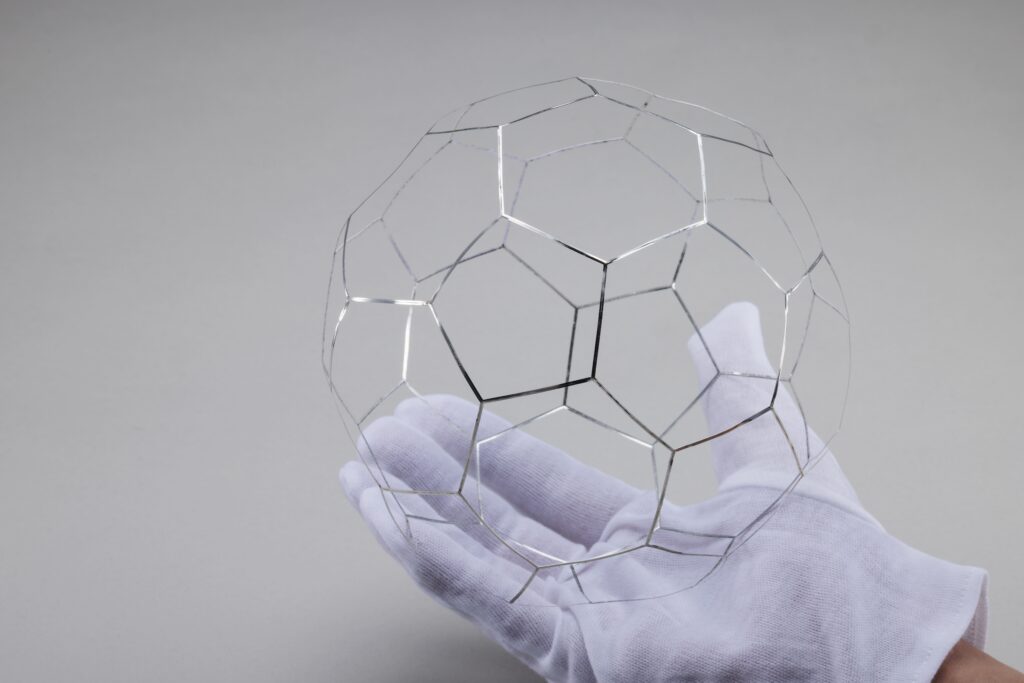 板厚0.1mmの薄板であることが伝わるように、あえてフレームの球体形状にしています。
